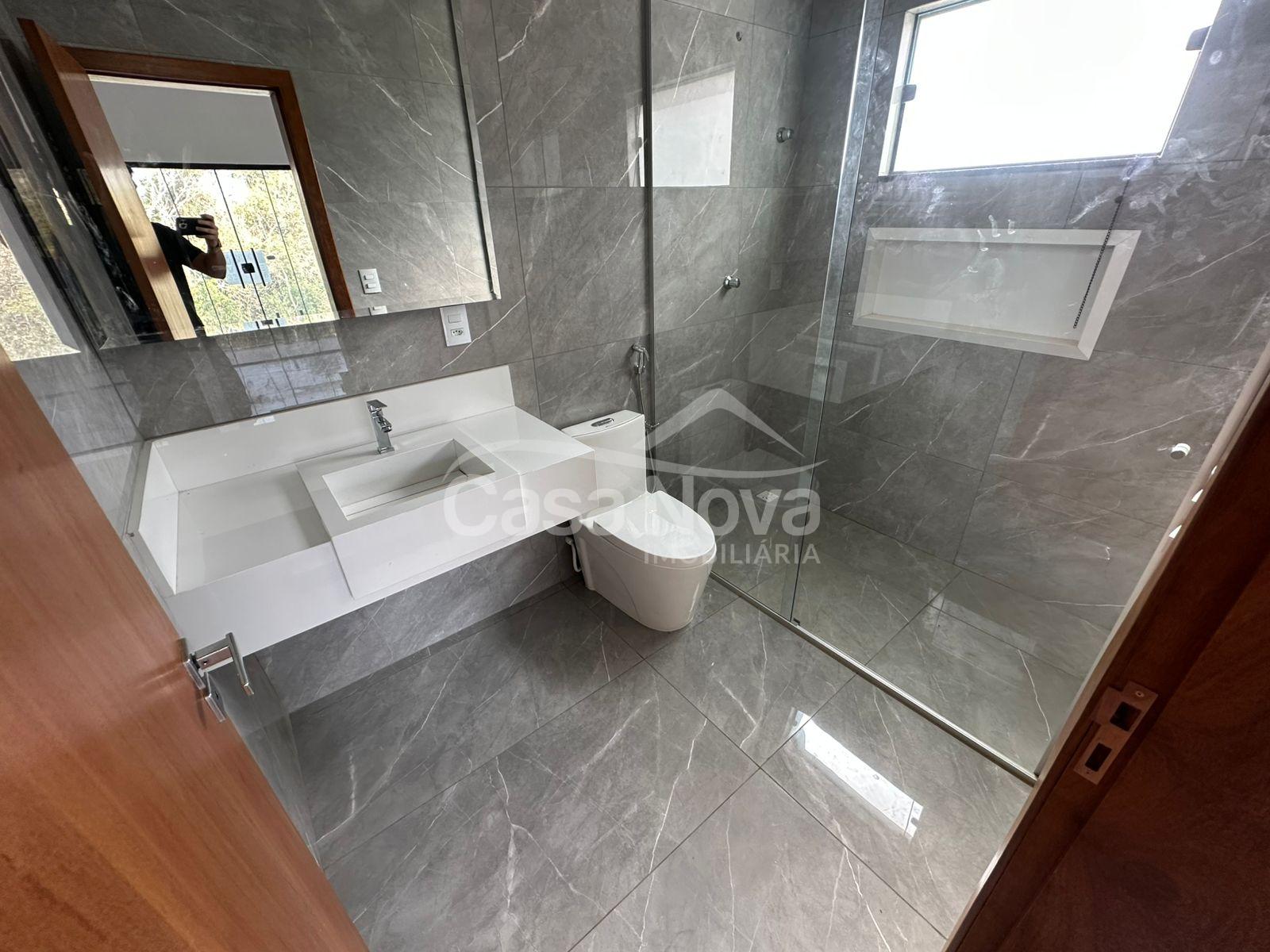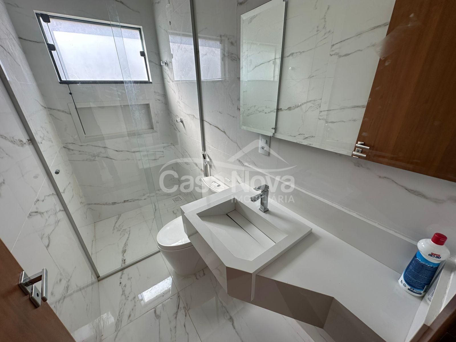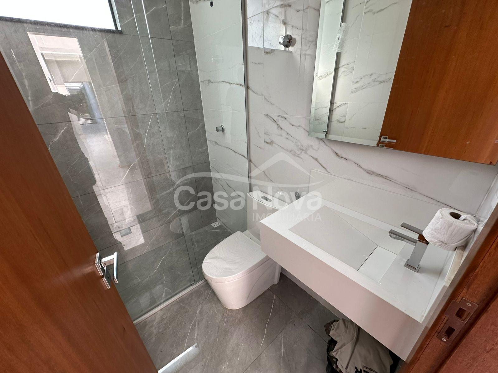 Segundo pavimento: 3 quartos com sacada (sendo 1 suíte com closet), e banheiro social.