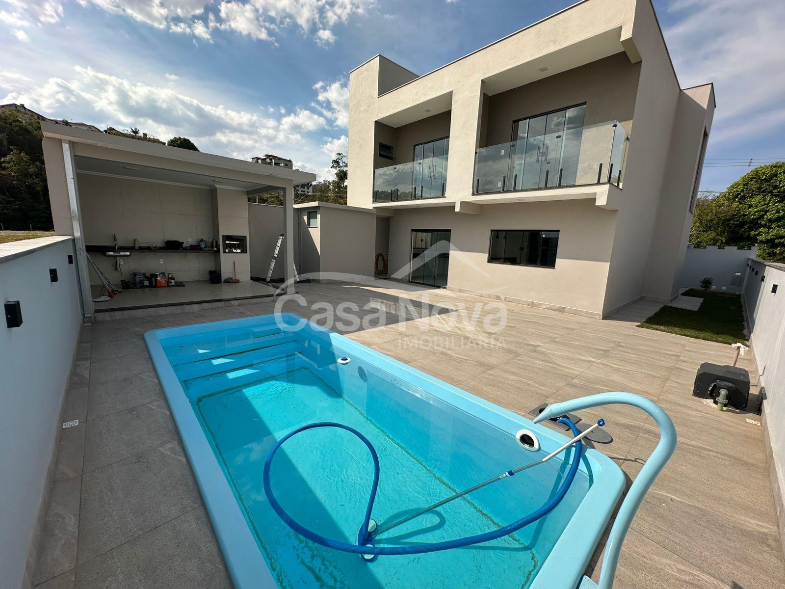 Em sua área externa temos piscina, área de lavanderia, espaço gourmet, lavabo, jardim, e garagem.